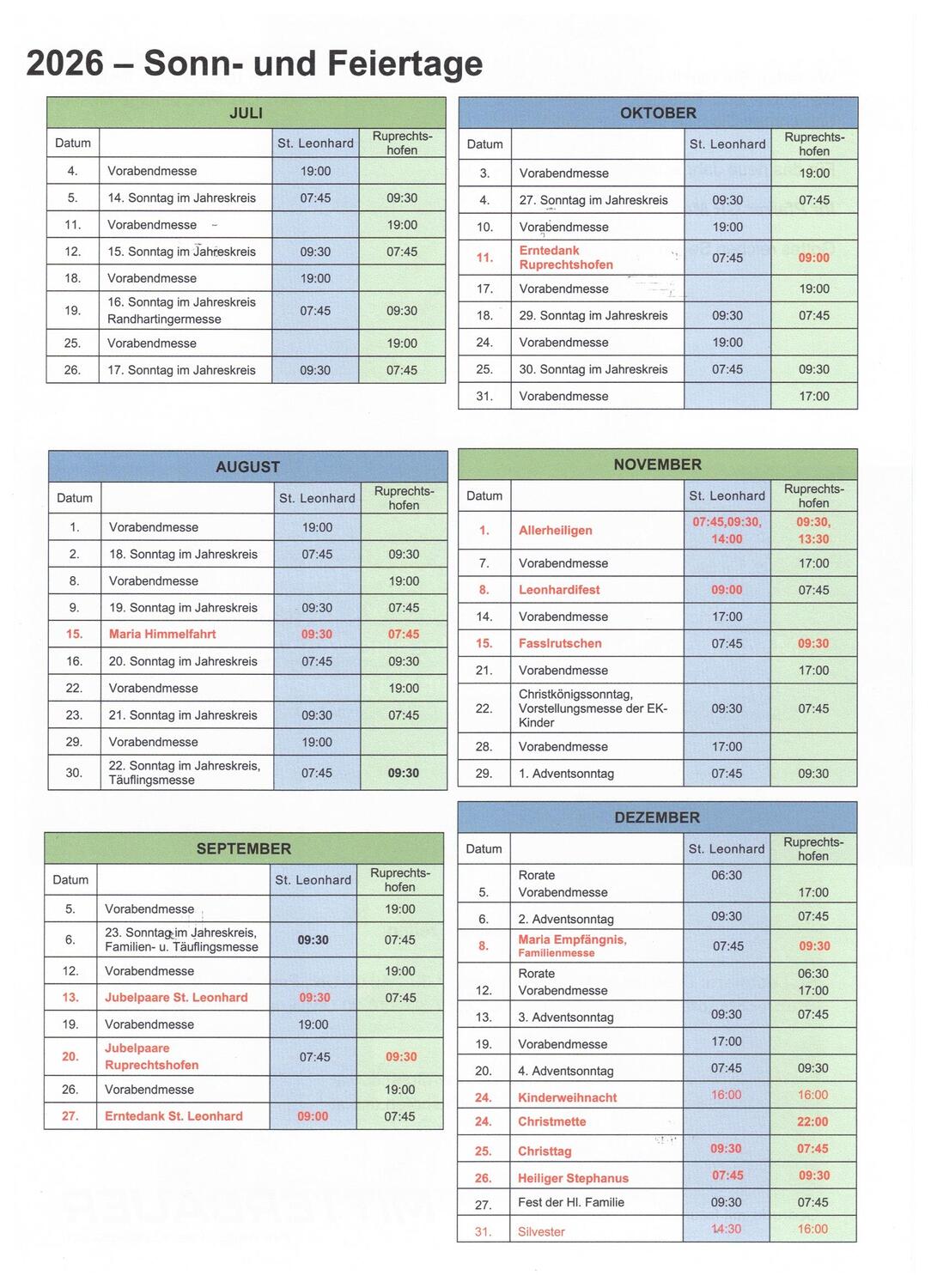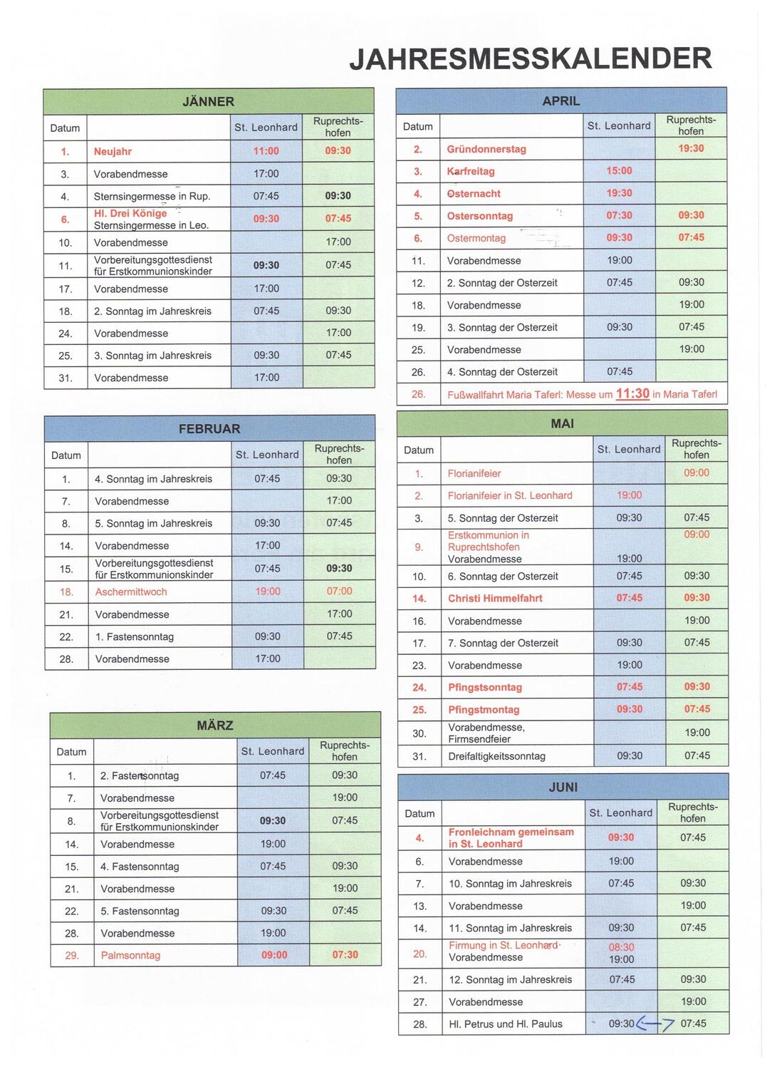 Pfarrblätter und Jahresplan